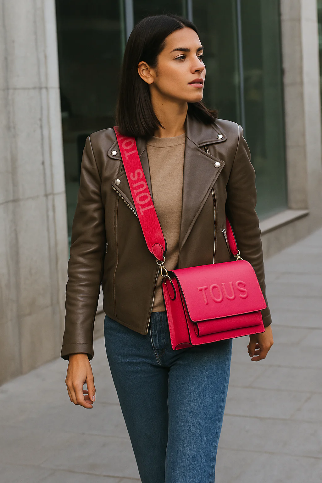A bolsa tiracolo Audree média fúcsia TOUS Brenda apresenta um design moderno e sofisticado, ideal para complementar qualquer look, desde o casual até o mais formal.